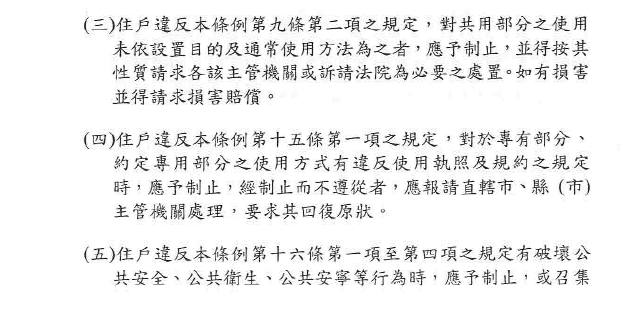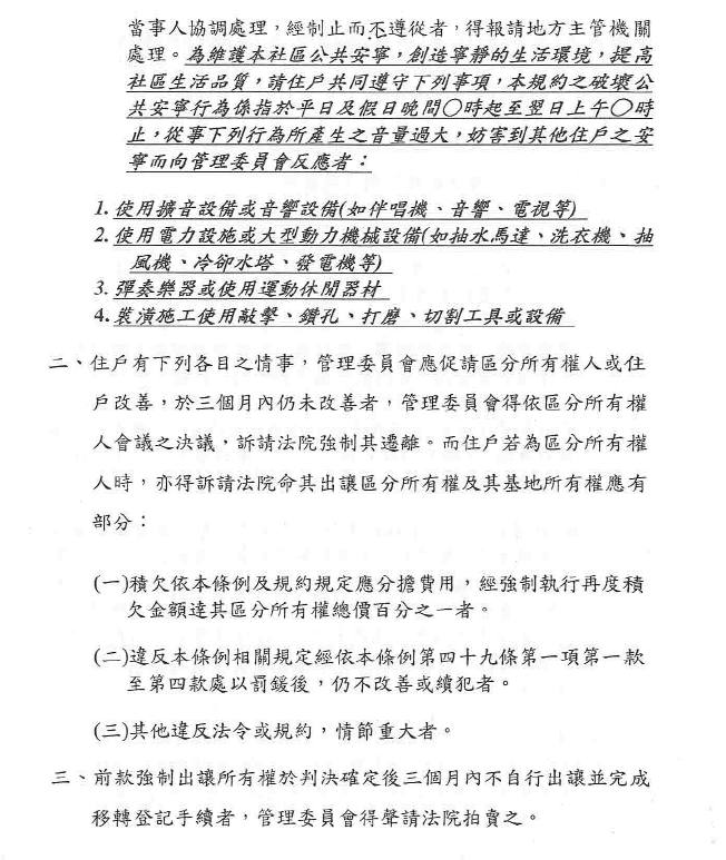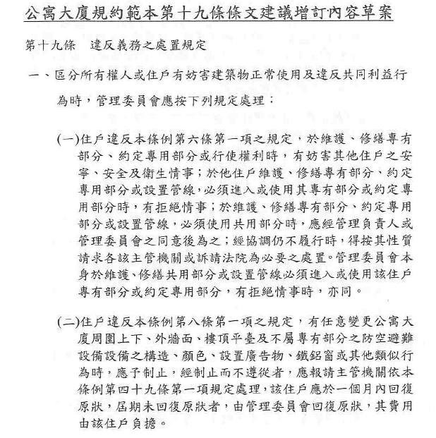 行政院環保署擬定 公寓大廈規約範本第19條 條文建議內容草案 |