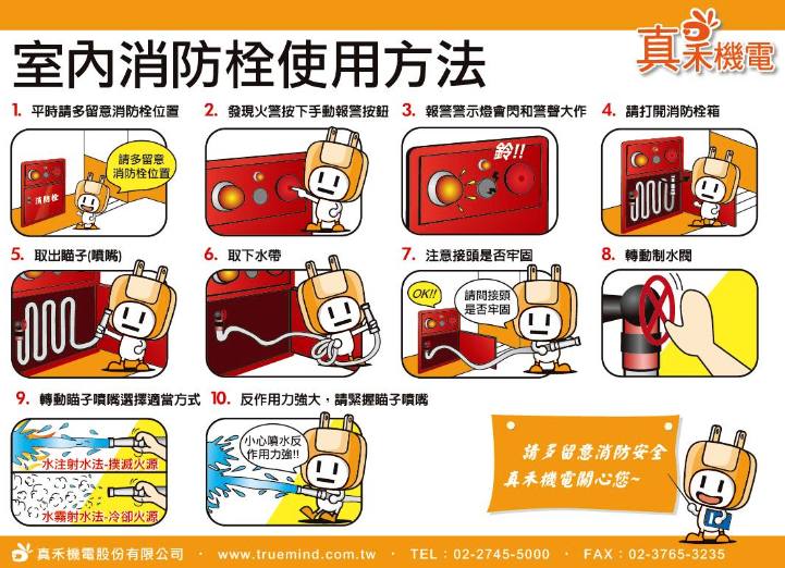 | 一、 | 設置目的:室內消防栓是各公寓大廈普遍常見的消防設備,主要目地是提供如果滅火器已無法壓制火勢,其操作方法如下: | ||||||||||||||||||||||||