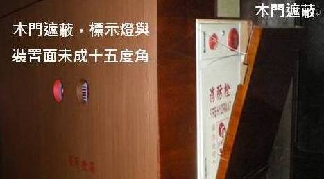 火警發信機之處所,其標示燈裝置後突出牆面,標示燈與裝置面成十五度角,在十公尺距離內須無遮視物且明顯易見。 |
